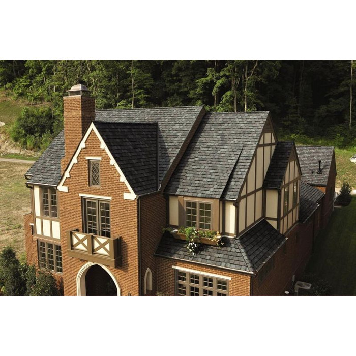 Grand Manor – серия элитной черепицы, выполненная в виде четырехлепесткового шинглз, с имитацией сланцевой кровли.