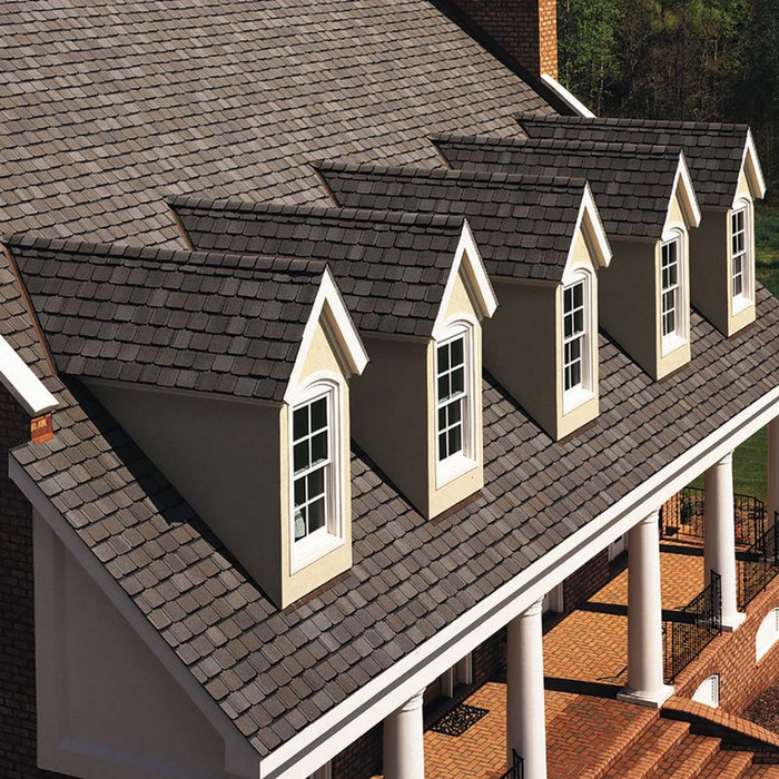 Grand Manor – серия элитной черепицы, выполненная в виде четырехлепесткового шинглз, с имитацией сланцевой кровли.