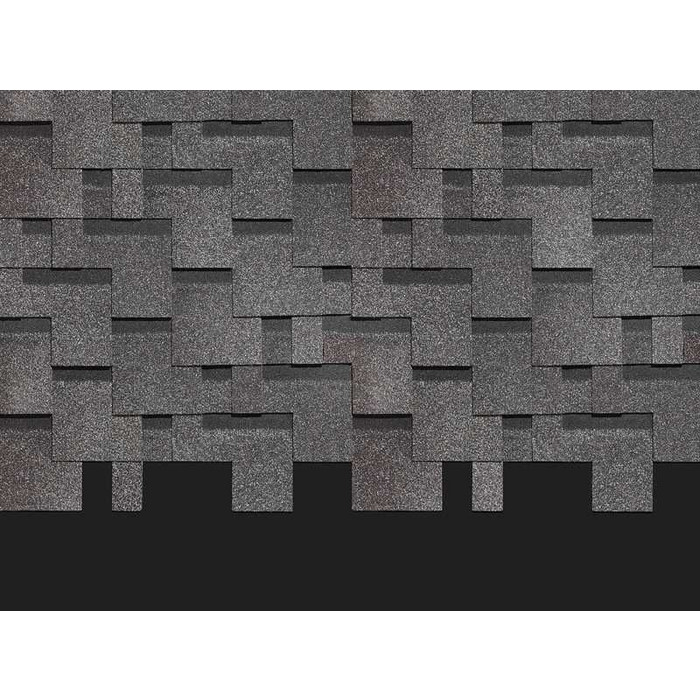 Черепица выполнена в глубоких графитовых оттенках. Она хорошо смотрится с фасадами в светлых холодных и теплых оттенках. Удачными будут и комбинации с насыщенными цветами, например, сайдингом «слива», «персик», «голубика».