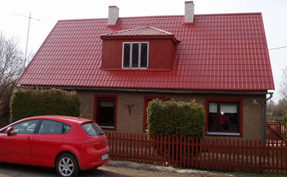 • Кровля защищена от механических воздействий, так как в основе металлочерепицы сталь толщиной 0.45 мм (с учётом металла, цинкового и полимерного слоя).
