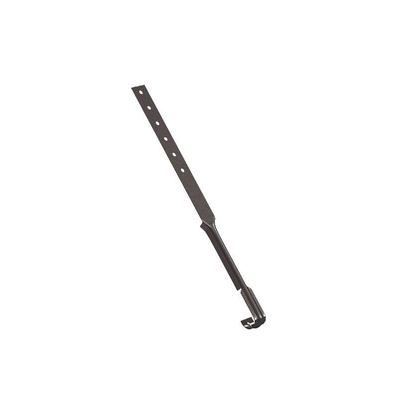 Элемент водосточной системы - поддержка желоба, предназначен для использования на всех видах кровли для обеспечения дополнительной поддержки желоба в сложных местах кровельных систем, в ендовах, или при крутых уклонах кровли, где возможен лавинообразный сход снега, который может повлечь деформацию желоба или нарушение его геометрии.