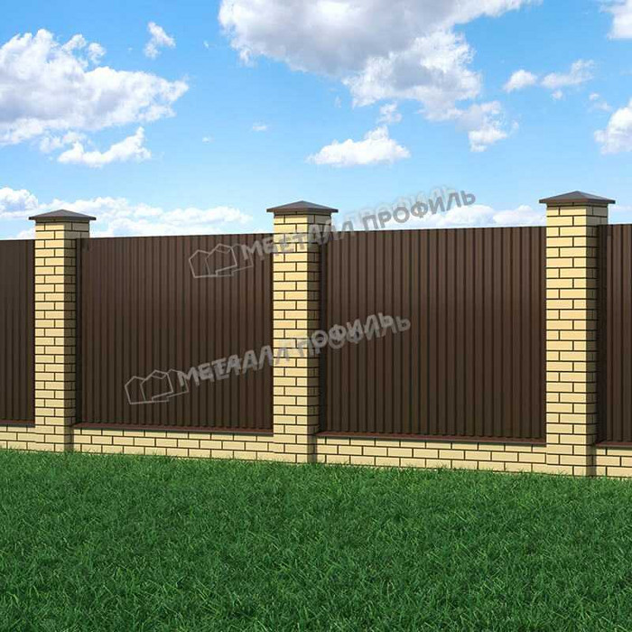 Профлист с маркировкой С-21 следует понимать, как «стеновой» тип с глубиной волны 21 мм. На самом деле, С-21 – один из наиболее универсальных стройматериалов, применяемый не только для фасадов. Он подойдёт как для облицовки стен, так и для обустройства кровли, установки заборов. С успехом С-21 находит применение при создании торговых павильонов, складских помещений, быстровозводимых зданий, а также как элемент сэндвич-панелей. С-21 отлично подходит в качестве стройматериала для Профилированного листа. Этому способствует его хорошая несущая способность. Довольно близко расположенные трапециевидные волны обеспечивают ему необходимую жёсткость. А пропорциональный рисунок гофры, идентичный с обеих сторон, придаёт Профилированному листу эстетичный внешний вид. По вашему заказу мы можем выпустить профиль С-21 с различной толщиной стали от 0,4 до 0,7 мм. Для повышения срока службы и внешней привлекательности, профилированный лист изготавливается с декоративным покрытием различных оттенков и фактур, включая покрытия под дерево, камень, кирпич.